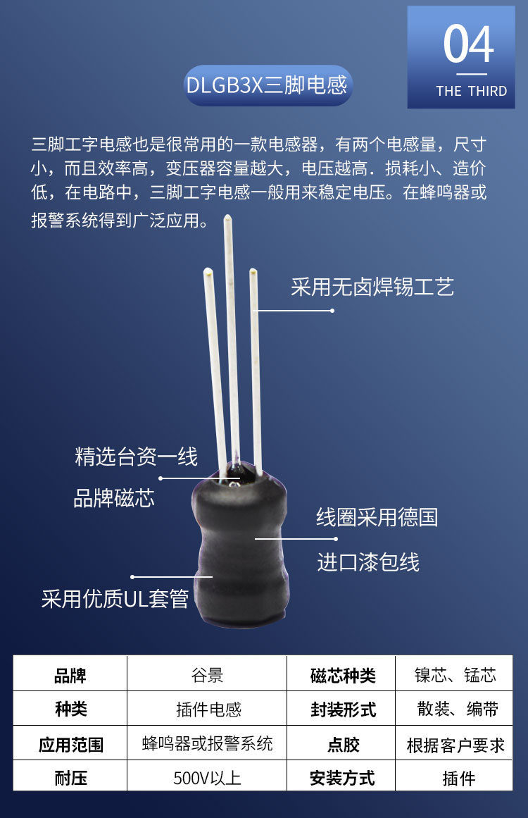 一、三腳電感DLGB3X的特征特性:
